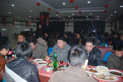 2月6日晚上,東華集團南區(qū)、新區(qū)的食堂里張燈結彩,一片歡聲笑語,550多名外地留守員工正沉浸在喜迎新春的歡樂氛圍中,這里正在為外地留守員工舉行“同吃年夜飯,歡度除夕夜”活動。