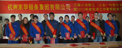 集團(tuán)副總經(jīng)理袁立華受宣董事長(zhǎng)委托作行政工作報(bào)告。袁總說,今天,受宣董事長(zhǎng)委托,向大家匯報(bào)2012年工作情況及2013年經(jīng)營(yíng)計(jì)劃和主要工作。2012年,雖然國(guó)際、國(guó)內(nèi)經(jīng)濟(jì)發(fā)展總體不好,東華發(fā)展也受到一定影響,但在廣大員工的共同努力下,企業(yè)仍然保持了健康發(fā)展。產(chǎn)值比上年有一定幅度增長(zhǎng),內(nèi)銷銷售額增長(zhǎng)10%左右,外銷本部持平,海外公司增幅較大,外銷自主品牌比例超過30%,員工工資增長(zhǎng)8.9%,一線員工超過10%,同時(shí),企業(yè)在誠(chéng)信與品牌建設(shè)、產(chǎn)品和技術(shù)創(chuàng)新、質(zhì)量與管理、員工發(fā)展與人才建設(shè)、社會(huì)責(zé)任與環(huán)境管理等方面均獲得省市區(qū)各級(jí)政府部門授予的諸多榮譽(yù)。