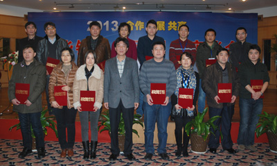 最后,內(nèi)銷公司總經(jīng)理戴迪漢分別宣讀了東華集團(tuán)和盾牌公司2012年優(yōu)秀經(jīng)銷商名單,宣碧華董事長向優(yōu)秀經(jīng)銷商頒發(fā)了榮譽(yù)證書并合影留戀。