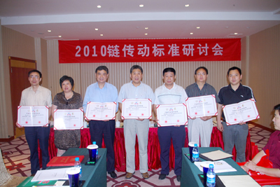 近日,全國2010年鏈傳動標準研討會在江蘇昆山召開。研討會上發(fā)布了2008年"中國標準創(chuàng)新貢獻獎"獲獎項目的通知。其中由全國鏈傳動標準化技術委員會組織編寫的“ISO 15654:2004 傳動用精密滾子鏈條疲勞試驗方法、GB/T 20736—2006 傳動用精密滾子鏈條疲勞試驗方法”標準榮獲一等獎。會上向該標準的獲獎單位和個人頒發(fā)了獎勵證書。吉林大學鏈傳動研究所、東華鏈條集團等7個主要完成單位獲得了“中國標準創(chuàng)新貢獻獎一等獎”稱號;吉林大學孟祥賓研究員和王義行教授、東華集團葉斌總工程師等10人獲先進個人獎。