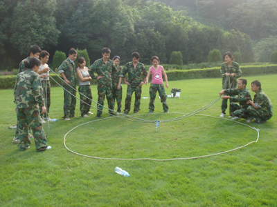 大家齊心協(xié)力完成拓展項(xiàng)目