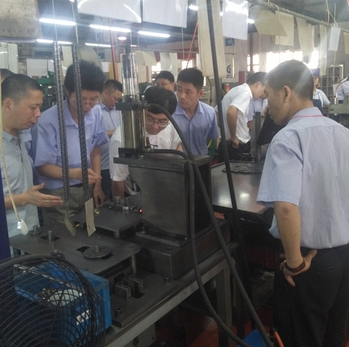 隨后客戶參觀了汽車鏈鏈條裝配車間、鏈板沖制車間等工序。在作業(yè)現(xiàn)場針對客戶提出的問題,接待人員均耐心地為客戶一一解答,客戶對公司汽車鏈條生產(chǎn)作業(yè)現(xiàn)場的生產(chǎn)能力和質(zhì)量保證能力表示滿意。