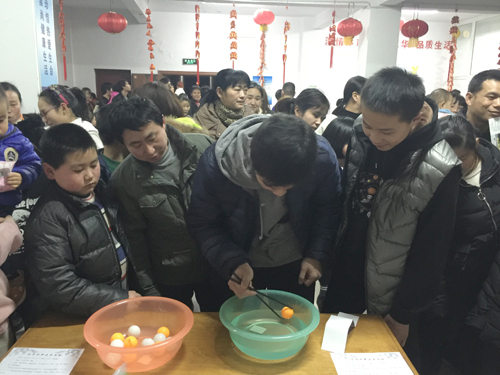 3月1日、2日晚上,東華員工公寓樓內被大紅燈籠、喜慶裝飾品裝扮一新,公司元宵佳節員工游園活動在四樓五樓隆重舉辦?;顒?/FONT>現場人聲鼎沸,擠滿了員工及孩子們,他們有的猜字謎、有的趣味套圈、有的夾乒乓球、有的疊羅漢、有的推幸運大轉盤,都玩的不亦樂乎!