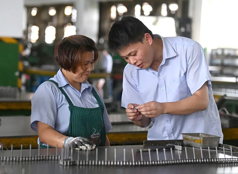 十年前,與所有應(yīng)屆大學(xué)生一樣,最初兩年的黃健一直跟著師傅學(xué)技術(shù)。第一個崗位是模具維修,這段經(jīng)歷讓黃健對公司、對生產(chǎn)、對產(chǎn)品有了直觀而更深刻的認(rèn)識。黃健發(fā)現(xiàn),理論和現(xiàn)實(shí)有很大的差距,真正進(jìn)入崗位后,很多知識不夠用。他在公司遇到幾個好師傅,他說好師傅就是面對他們這些“菜鳥”,會耐心講解、傾囊相授、在關(guān)鍵步驟上指點(diǎn)、會把握方向。跟著師傅日積月累的學(xué)習(xí)不僅讓黃健的技術(shù)日益精湛,也讓他的思想逐漸成熟。做一名好工匠的想法在他的腦海里悄悄萌芽。他的工作崗位也從模具維修變化到模具加工,再到模具設(shè)計(jì)。慢慢地,黃健具備了可以獨(dú)立完成一個工裝模具從設(shè)計(jì)、加工、安裝、調(diào)試全流程的能力。通過學(xué)習(xí)提升自己的職業(yè)技能的同時(shí),他也通過學(xué)習(xí)改變著自己的崗位,模具維修到模具加工再到模具設(shè)計(jì),直至現(xiàn)在成為非標(biāo)鏈自動裝配設(shè)備設(shè)計(jì)開發(fā)項(xiàng)目負(fù)責(zé)人,實(shí)現(xiàn)從機(jī)械結(jié)構(gòu)設(shè)計(jì)、電路設(shè)計(jì)、電氣編程、設(shè)備生產(chǎn)線開發(fā)調(diào)試一體化。
