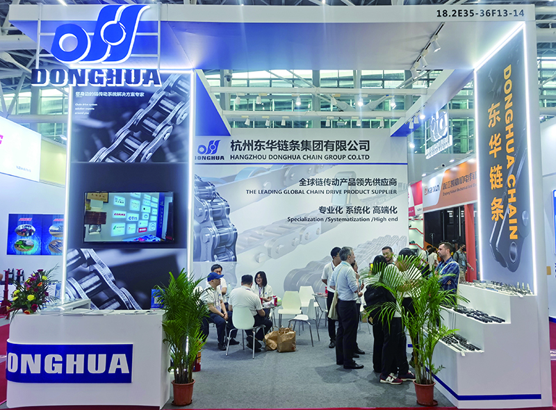 東華鏈條展廳位于展館的D區(qū),由國際市場部、盾牌公司等聯(lián)合參展,展品有各種高端滾子鏈、輸送鏈等150余件。展會期間不斷有世界各地的新客戶來到展廳參觀詢問,近至亞洲,遠(yuǎn)至南美和歐洲,他們詢問了解公司信息,交換名片和遞送公司宣傳冊,也有合作多年的老客戶、老朋友到東華展廳參觀交流。參展團(tuán)隊向客人介紹企業(yè)的發(fā)展情況以及新產(chǎn)品、新技術(shù)等信息,雙方積極尋求新的合作方向。