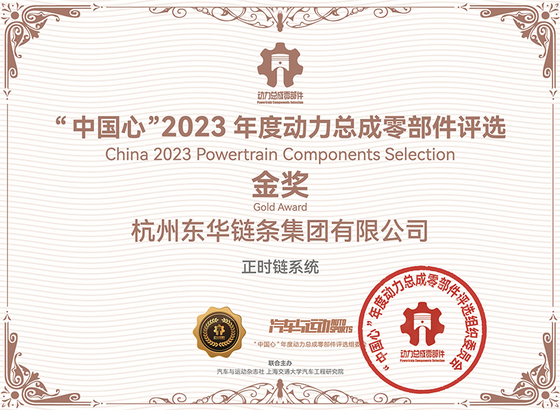 10月27日,“中國心”2023年度動力總成零部件評選在揚(yáng)州市拉開帷幕。東華鏈條集團(tuán)汽車鏈?zhǔn)聵I(yè)部總經(jīng)理邢建恒、營銷處處長汪恭兵攜東華最新汽車正時鏈系統(tǒng)解決方案的CL04DF24-2x3W(132L)正時鏈系統(tǒng)、CL05DF2(a)4-2x4W(130L)正時鏈系統(tǒng)、CL04DF26-4x4W(174L)正時鏈正時系統(tǒng)參評,這三套正時系統(tǒng)產(chǎn)品已大批量配套國內(nèi)主流汽車發(fā)動機(jī)。經(jīng)過專家組現(xiàn)場評審,2023年度動力總成零部件共評出六名金獎和四名優(yōu)秀獎。東華參選的“正時鏈系統(tǒng)”獲得“中國心”2023年度動力總成零部件金獎。獲獎理由為東華鏈條具備完全自主正向系統(tǒng)設(shè)計(jì)、仿真分析以及系統(tǒng)動態(tài)測試能力,其研發(fā)的輕量化、低摩擦、高耐磨、高疲勞鏈系統(tǒng)產(chǎn)品在國內(nèi)汽車主機(jī)市場占有率達(dá)到22%。創(chuàng)新的銷軸表面滲釩專利技術(shù)廣泛應(yīng)用于最新混動專用發(fā)動機(jī)、渦輪增壓發(fā)動機(jī)、柴油發(fā)動機(jī)和甲醛發(fā)動機(jī)。