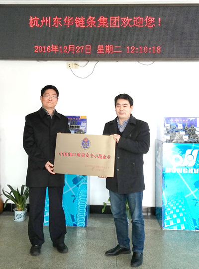 會(huì)上,何處長(zhǎng)針對(duì)“中國(guó)出口質(zhì)量安全示范企業(yè)”的背景及作用作了介紹。袁副總首先感謝質(zhì)檢系統(tǒng)20多年來(lái)對(duì)東華的指導(dǎo)和幫助。隨后,針對(duì)東華產(chǎn)品質(zhì)量提升和知識(shí)產(chǎn)權(quán)等進(jìn)行介紹。何處長(zhǎng)說(shuō),東華集團(tuán)自2007年開(kāi)展免驗(yàn)工作,到現(xiàn)在已將近十年時(shí)間,隨著出口檢驗(yàn)范圍的變化,鏈條產(chǎn)品已不需要強(qiáng)制檢驗(yàn),但東華集團(tuán)一直按照標(biāo)準(zhǔn)堅(jiān)持做好自主管理,產(chǎn)品質(zhì)量不斷提升,質(zhì)量在全國(guó)領(lǐng)先,給同行業(yè)樹(shù)立了榜樣,是中國(guó)鏈條行業(yè)的一面旗幟。為促進(jìn)出口產(chǎn)品質(zhì)量安全水平提升,培育出口競(jìng)爭(zhēng)新優(yōu)勢(shì),根據(jù)《中國(guó)出口質(zhì)量安全示范企業(yè)創(chuàng)建工作規(guī)范(試行)》的規(guī)定,經(jīng)各直屬檢驗(yàn)檢疫局評(píng)估推薦,國(guó)家質(zhì)檢總局審核,首批授予東華集團(tuán)“中國(guó)出口質(zhì)量安全示范企業(yè)”稱(chēng)號(hào)。此榮譽(yù)實(shí)質(zhì)為“出口產(chǎn)品免驗(yàn)”的延續(xù),允許企業(yè)可以在任何包裝上做宣傳,希望東華鏈條集團(tuán)越做越好。